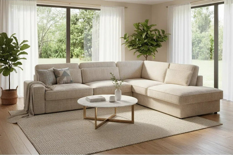 Canapé d'Angle Lexas Côtelé Blanc Cassé