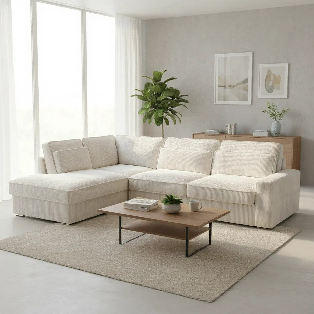 Canapé d'Angle Lexas Côtelé Blanc Cassé