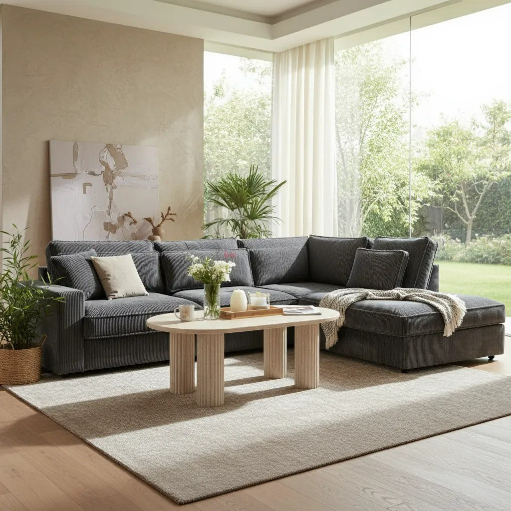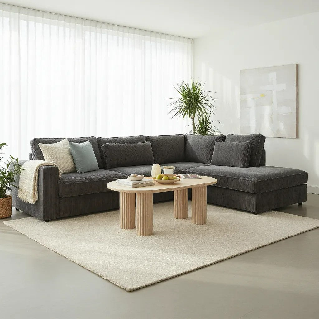 Canapé d'Angle Lexas Côtelé Gris Anthracite
