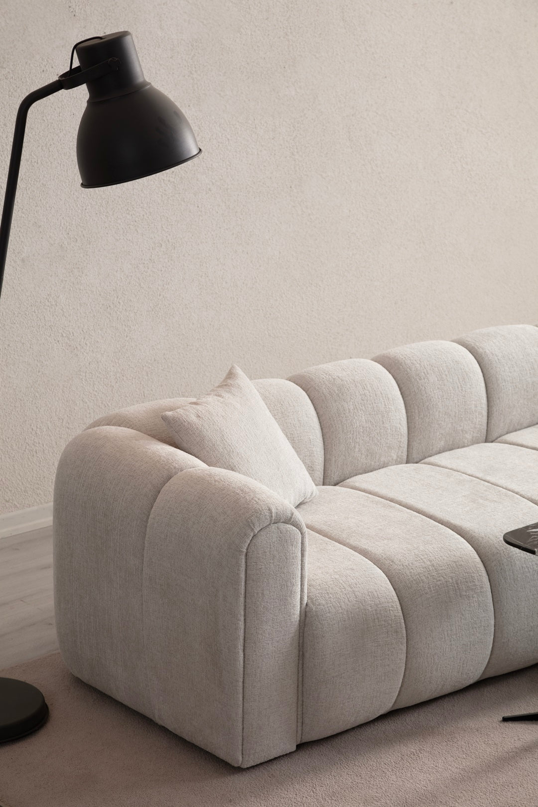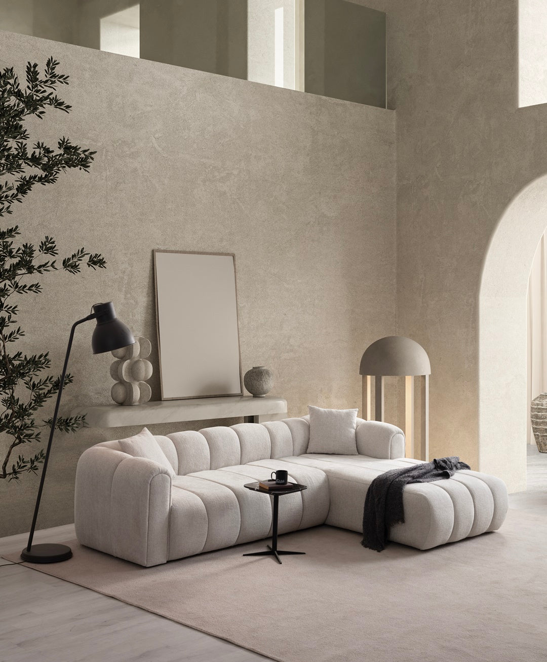 Canapé d'Angle Accasso Laine Bouclée Blanc Cassé