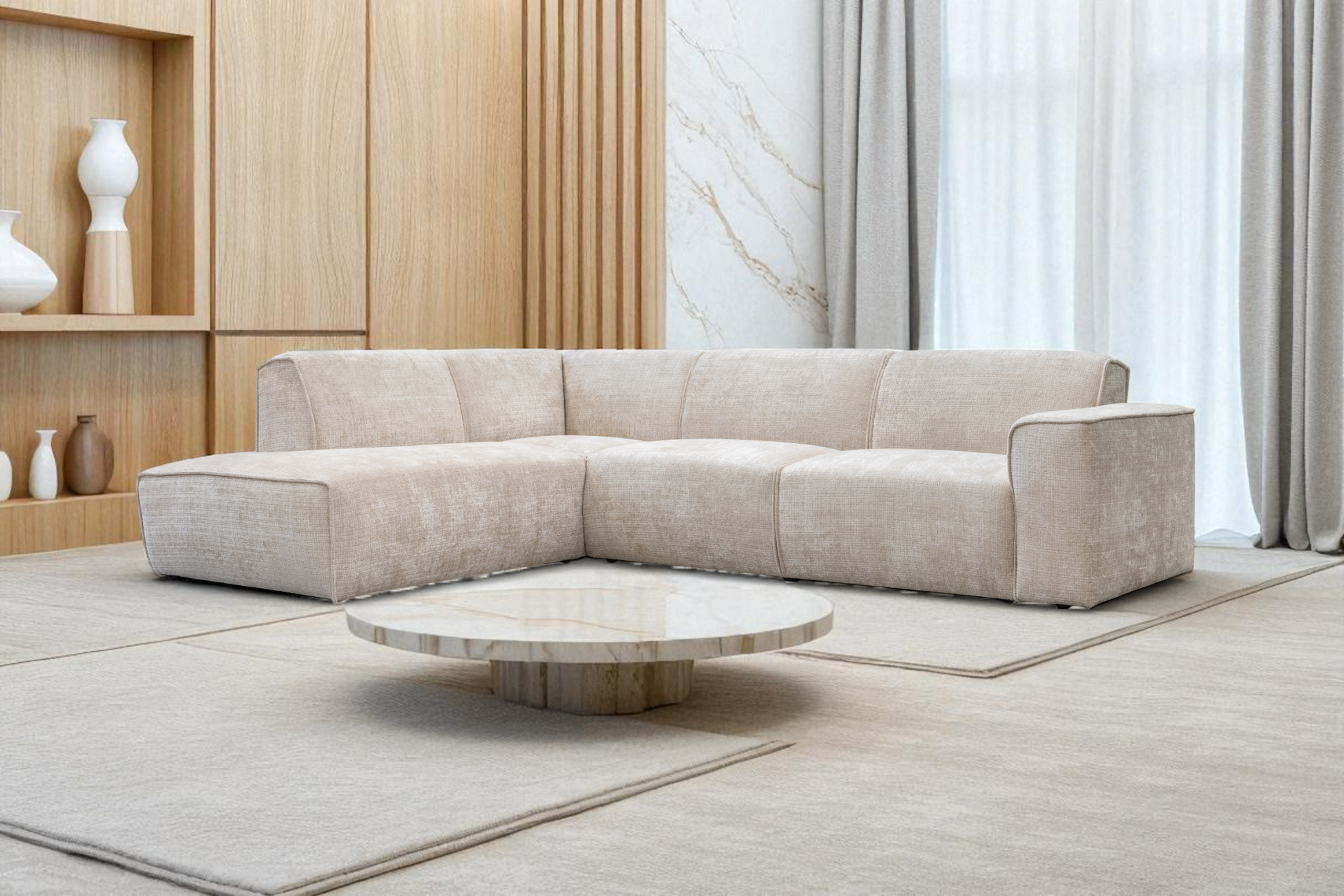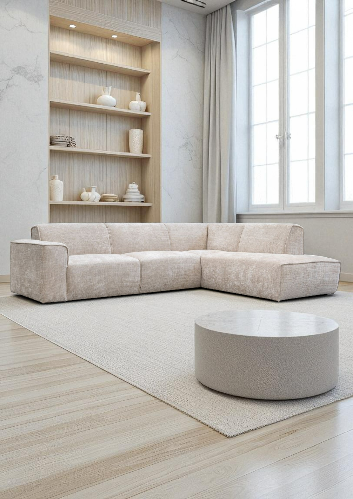 Canapé d'Angle Collet Tweed Crème