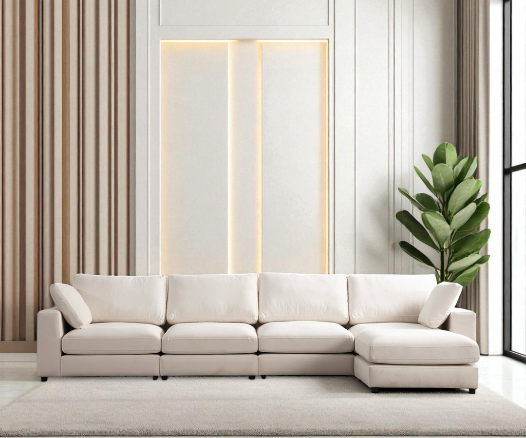Canapé Modulable Julia Velours 4+1 Pouf