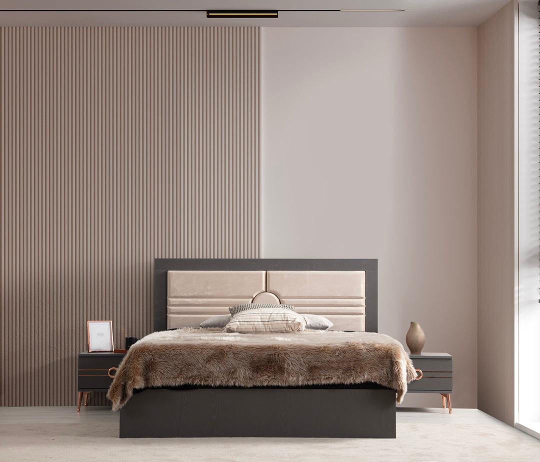 Doté de systèmes de vérins d'amortissements renforcés, de 12 pieds inoxydables répartis sous le coffre, de 2 poignets métalliques pour une utilisation aisée des doubles coffres relevables, et d'une structure de coffre en métal travaillé ingénieusement, ce lit offre un confort exceptionnel et une praticité remarquable.