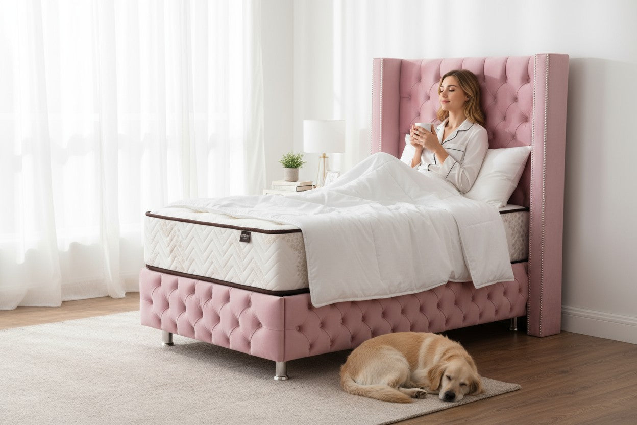 Lit Coffre 1 Place CLOUTÉ ROSE - Velours
