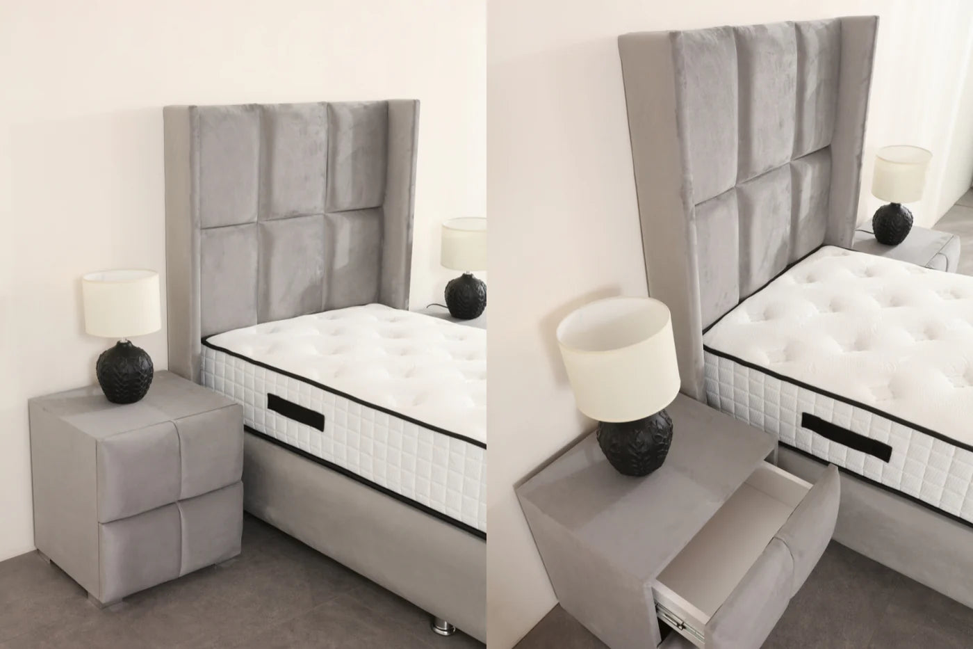 Doté de systèmes de vérins d'amortissements renforcés, de 12 pieds inoxydables répartis sous le coffre, de 2 poignets métalliques pour une utilisation aisée des doubles coffres relevables, et d'une structure de coffre en métal travaillé ingénieusement, ce lit offre un confort exceptionnel et une praticité remarquable.
