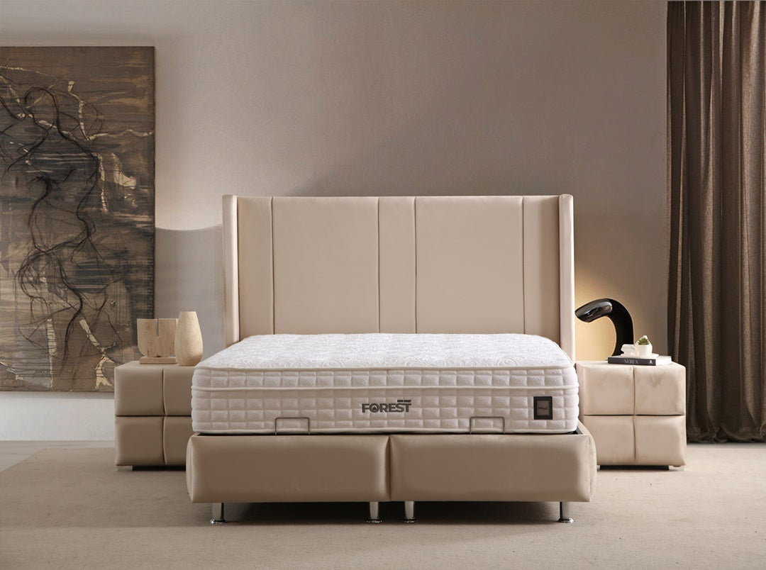 Doté de systèmes de vérins d'amortissements renforcés, de 12 pieds inoxydables répartis sous le coffre, de 2 poignets métalliques pour une utilisation aisée des doubles coffres relevables, et d'une structure de coffre en métal travaillé ingénieusement, ce lit offre un confort exceptionnel et une praticité remarquable.