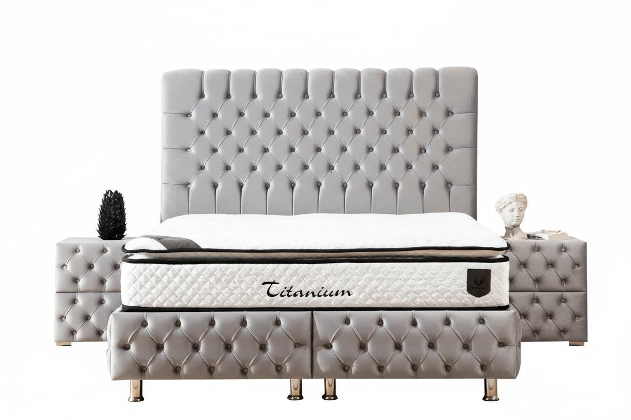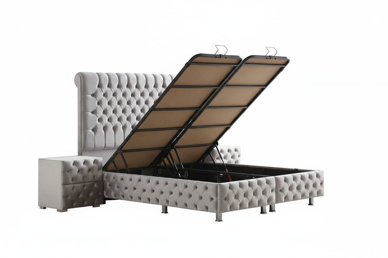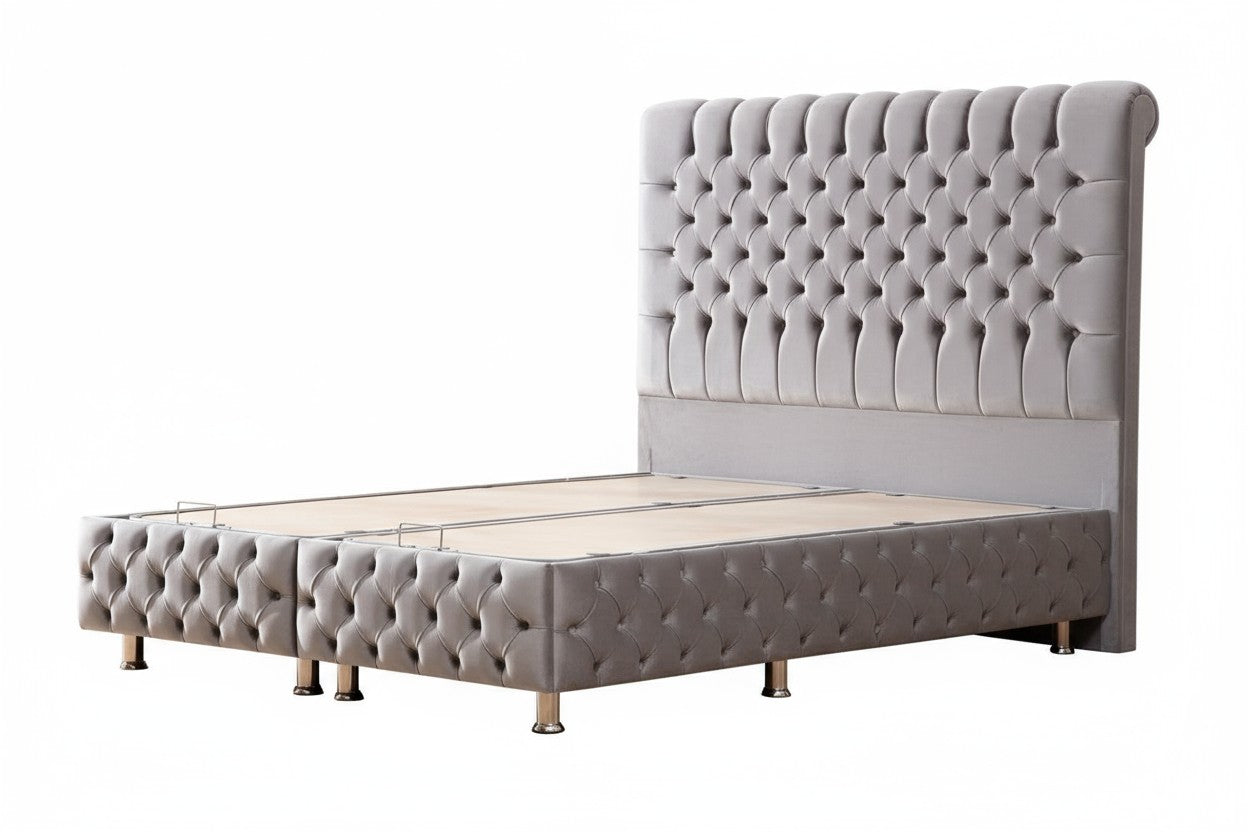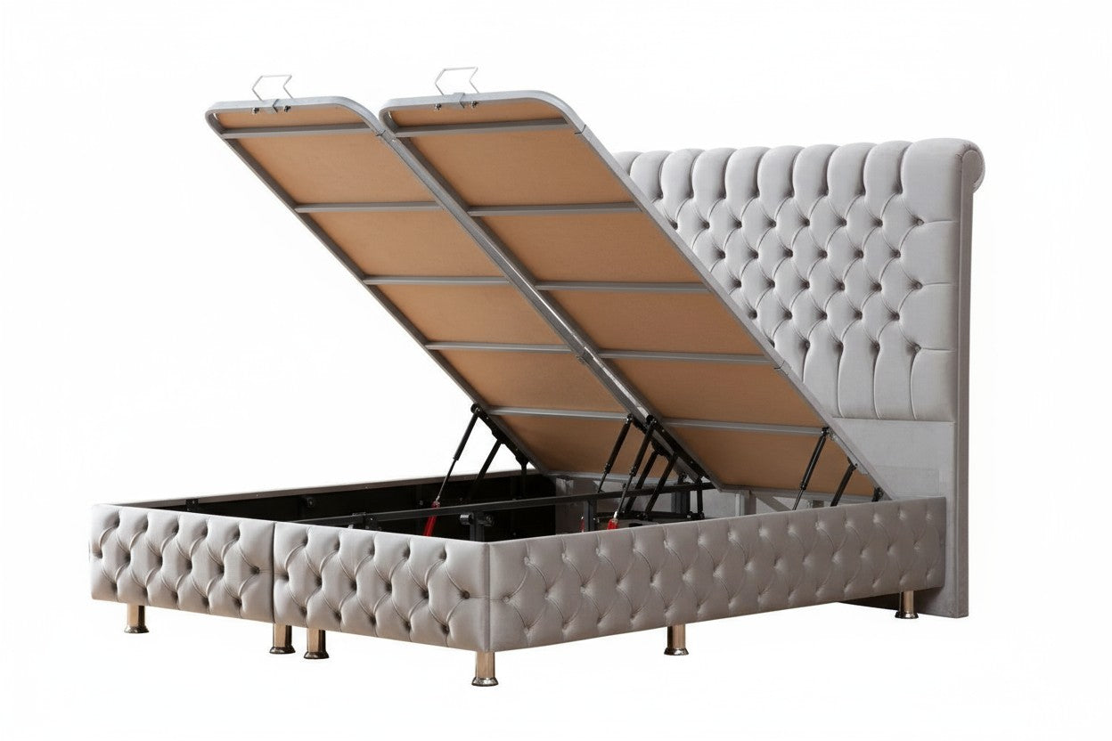 Lit Coffre LUNA GRIS - Velours Capitonné