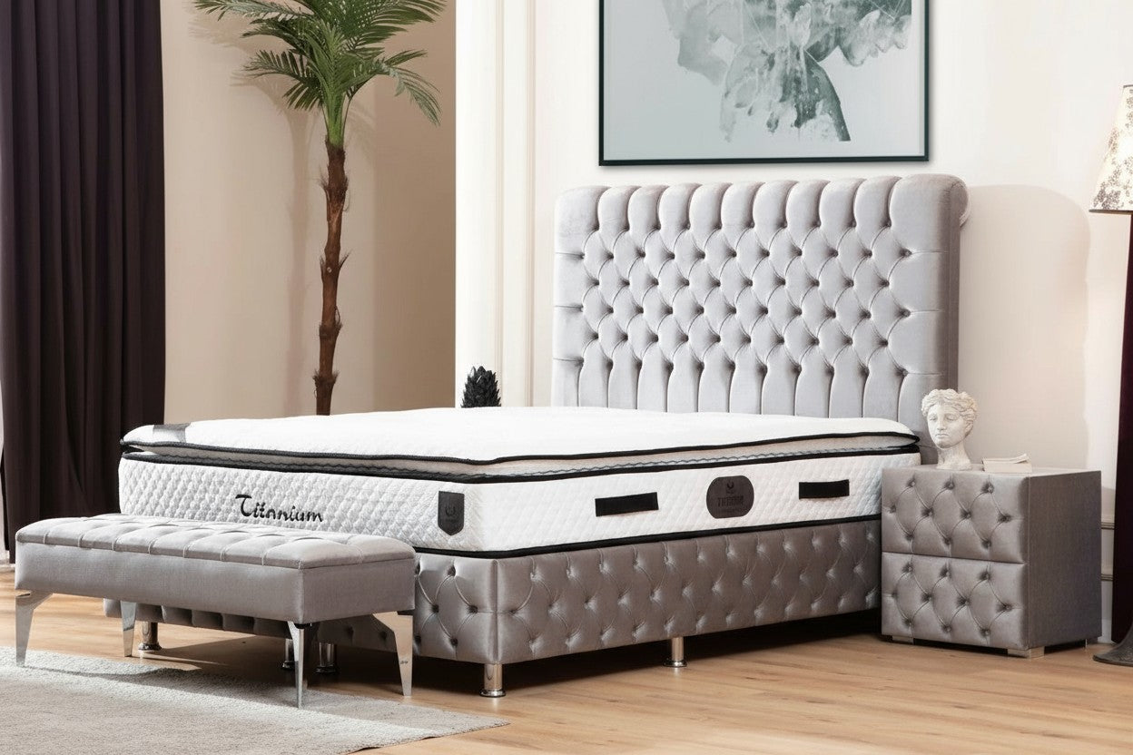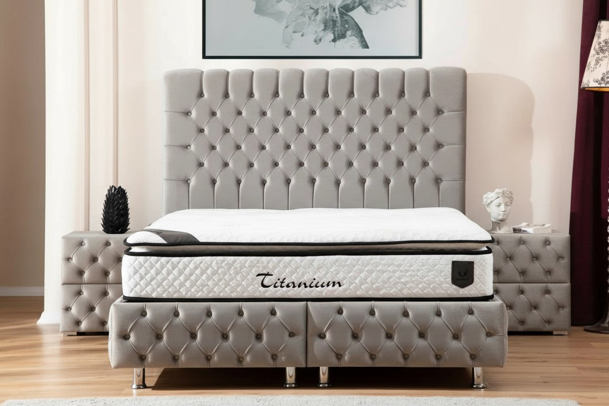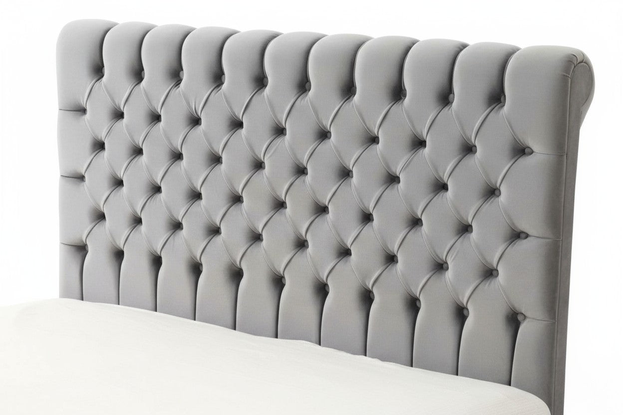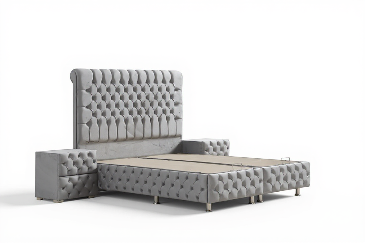 Lit Coffre LUNA GRIS - Velours Capitonné