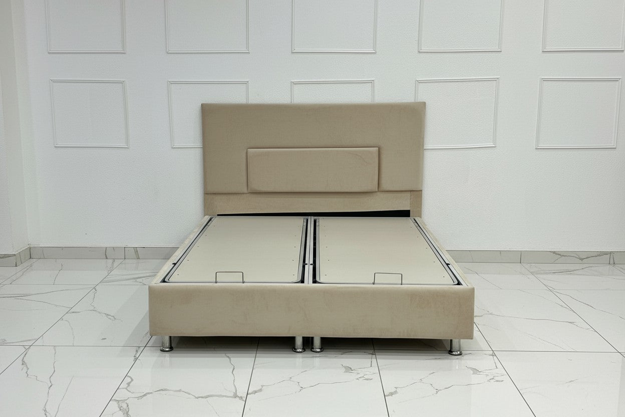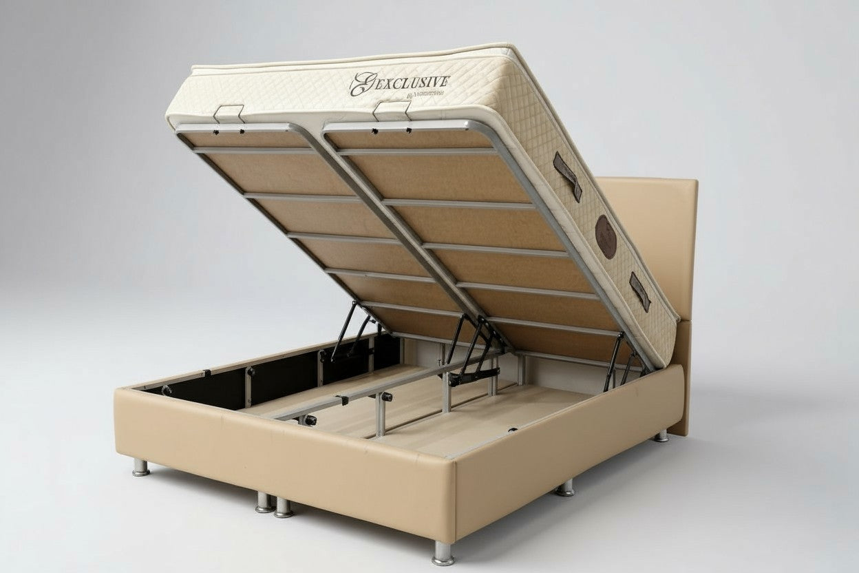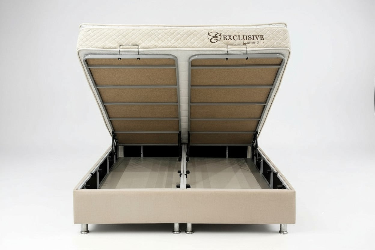 Doté de systèmes de vérins d'amortissements renforcés, de 12 pieds inoxydables répartis sous le coffre, de 2 poignets métalliques pour une utilisation aisée des doubles coffres relevables, et d'une structure de coffre en métal travaillé ingénieusement, ce lit offre un confort exceptionnel et une praticité remarquable.