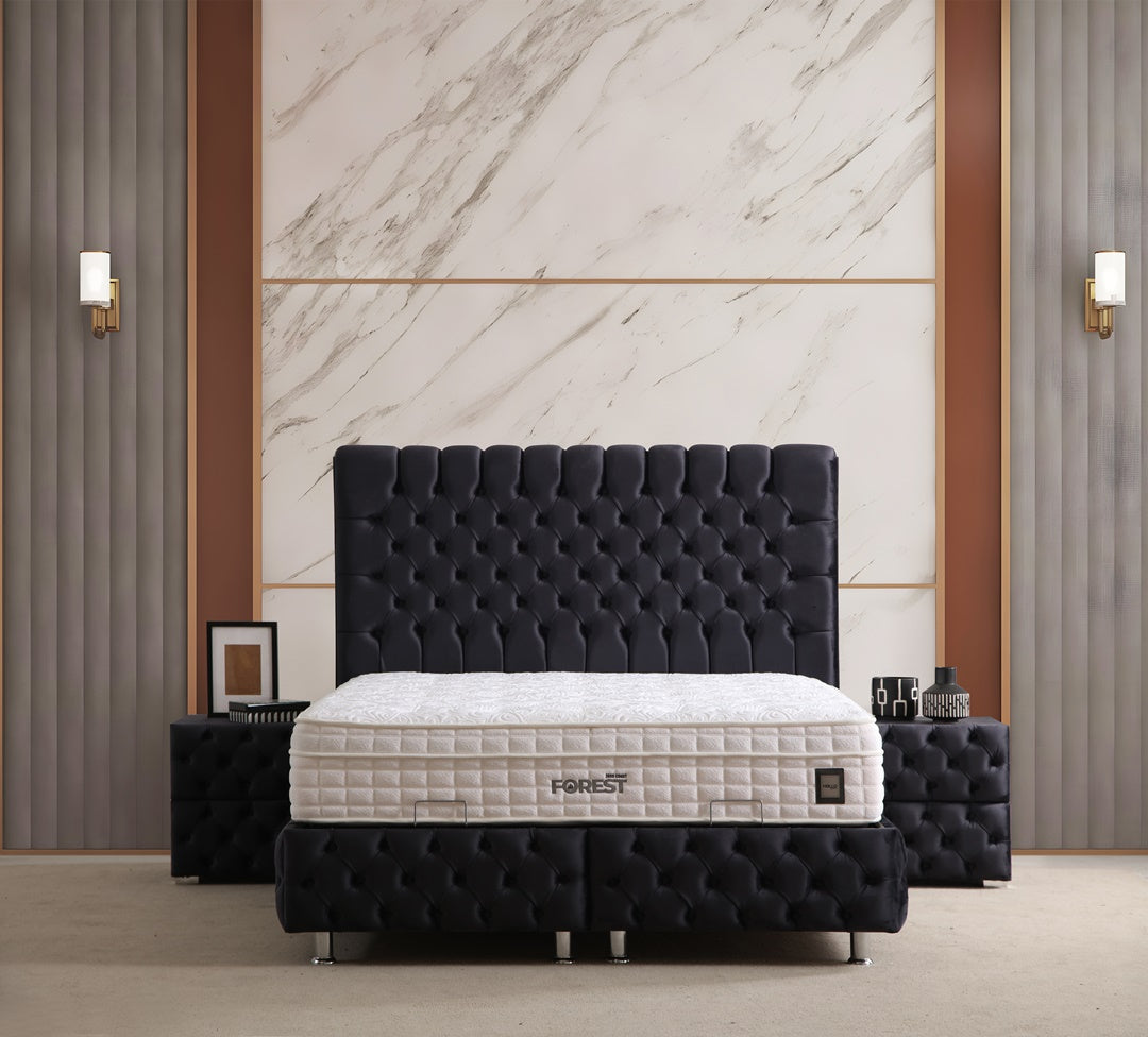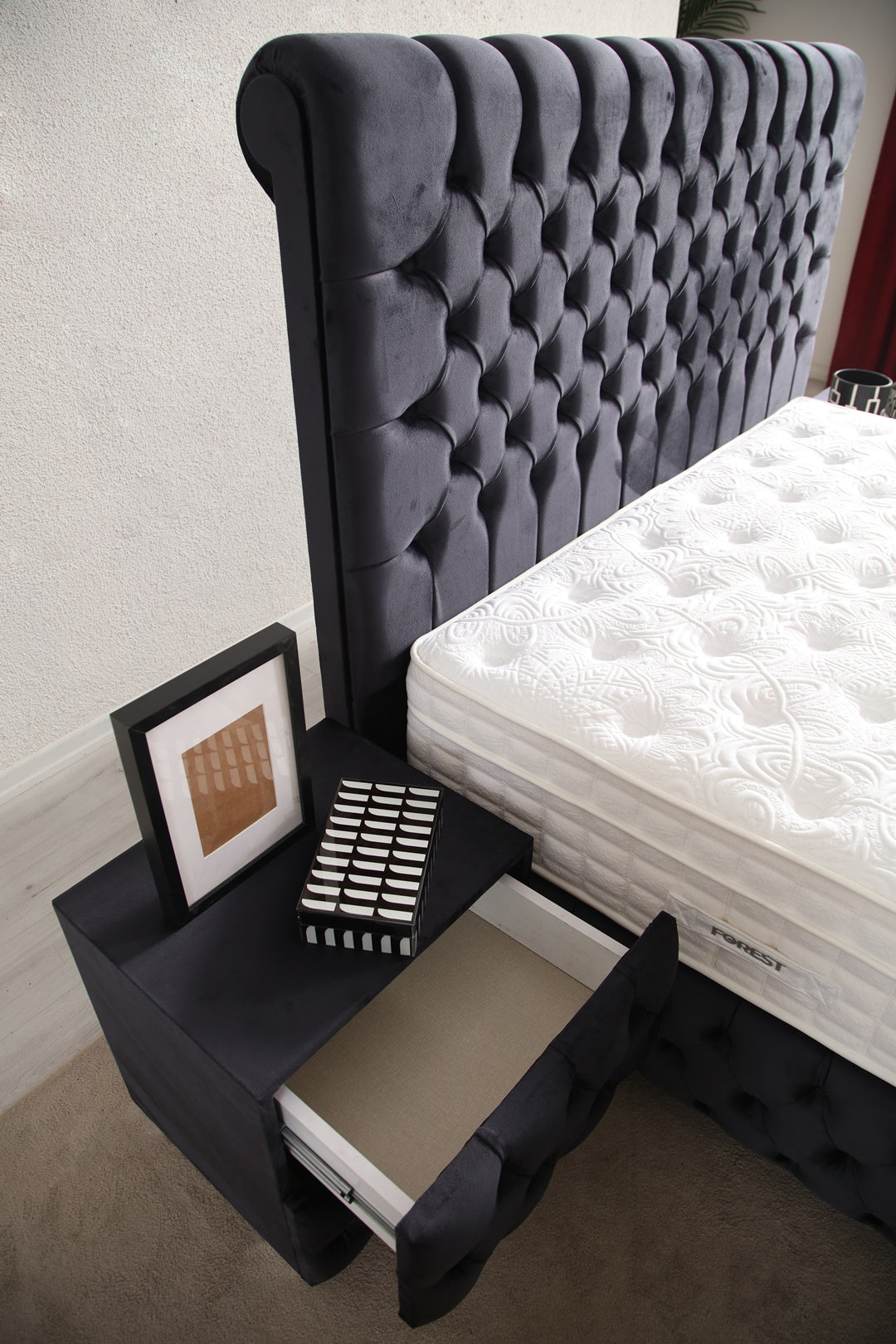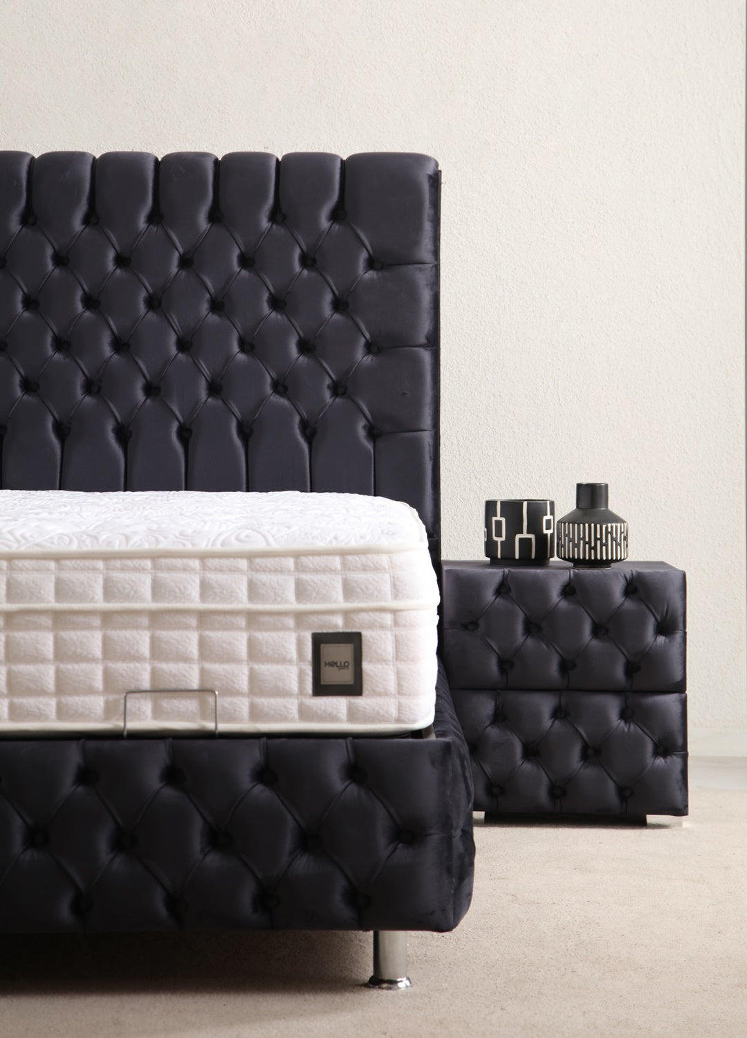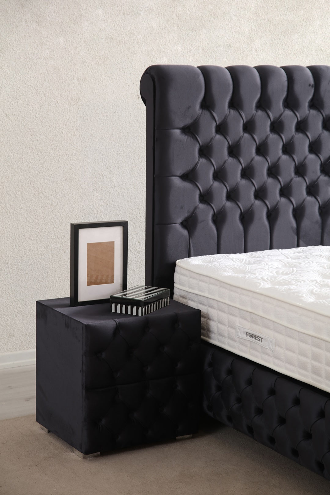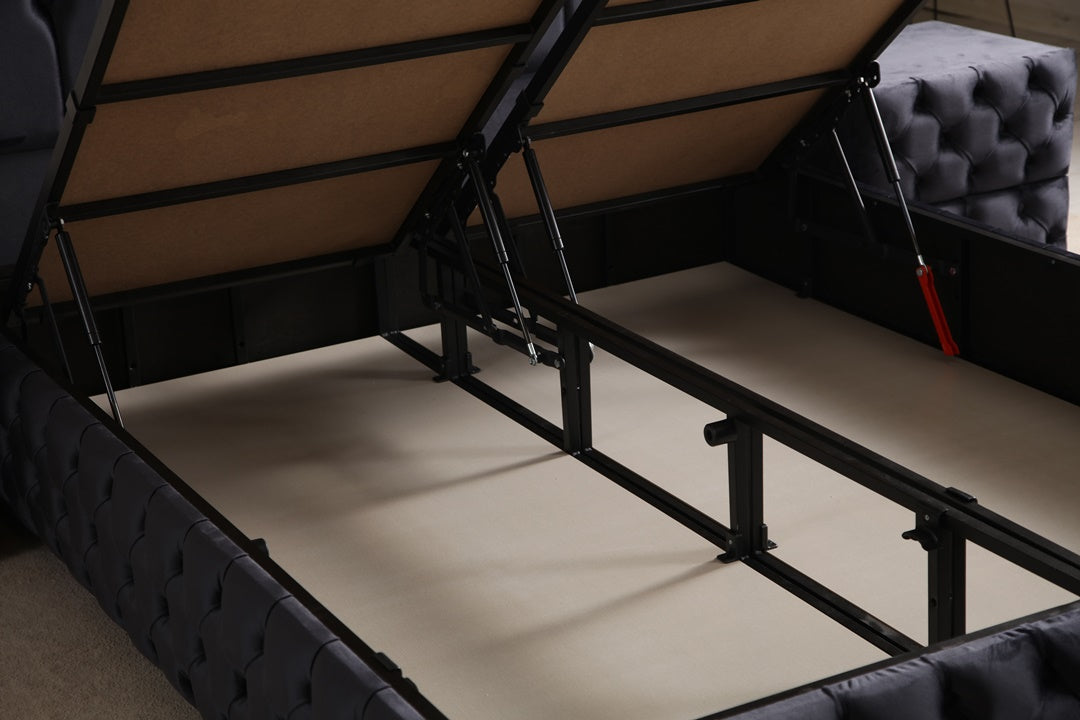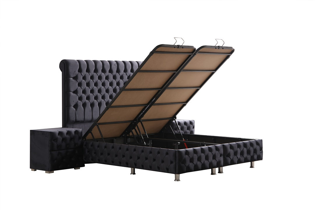 Lit Coffre LUNA NOIR - Velours Capitonné
