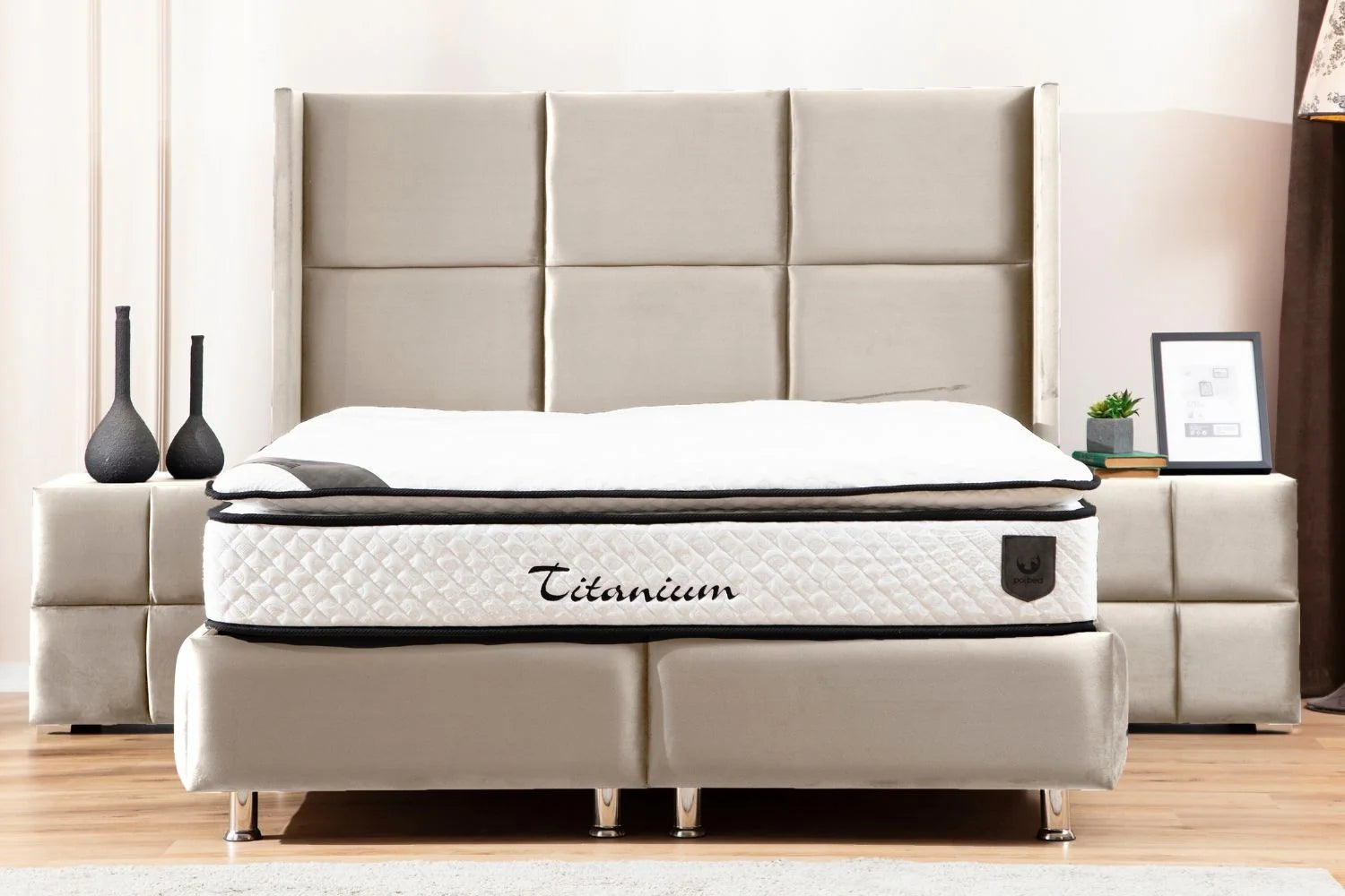 Doté de systèmes de vérins d'amortissements renforcés, de 12 pieds inoxydables répartis sous le coffre, de 2 poignets métalliques pour une utilisation aisée des doubles coffres relevables, et d'une structure de coffre en métal travaillé ingénieusement, ce lit offre un confort exceptionnel et une praticité remarquable.
