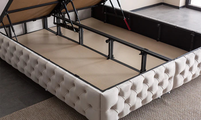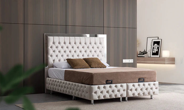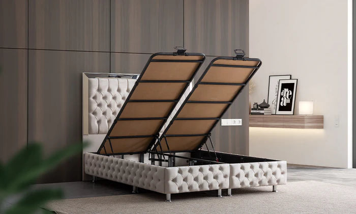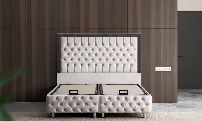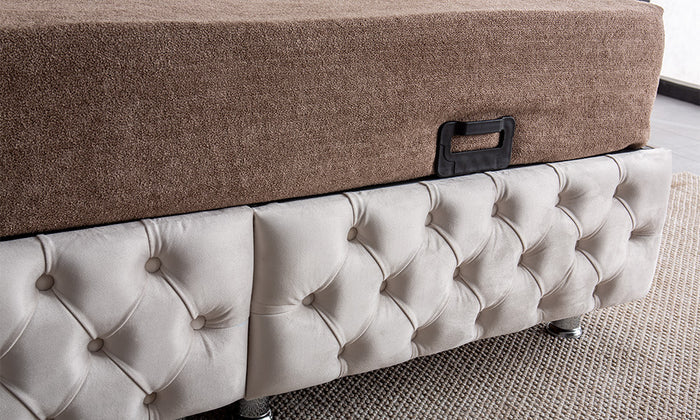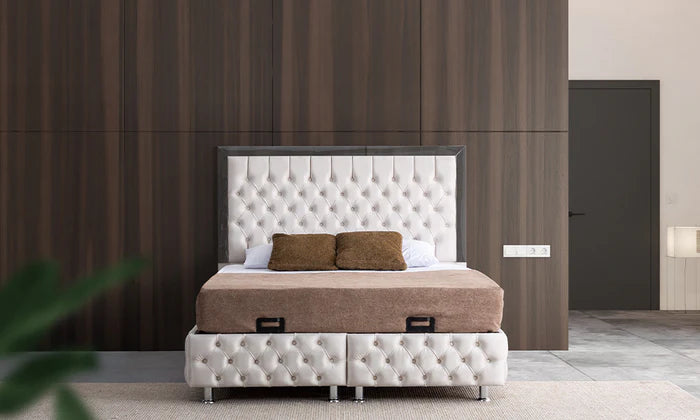 Lit Coffre ROMAY BLANC CASSÉ - Velours capitonné